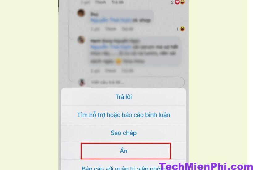 Bạn chỉ cần nhấn giữ bình luận đó sau đó chọn Ẩn.